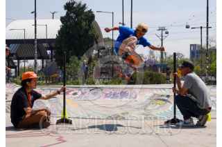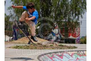 CIUDAD DE MÉXICO, 23MARZO2025.- Niños y niñas practican saltos de altura en patineta durante el Festival "Primavera en Chapultepec 2025" en parque Parcur, primera sección de Chapultepec. El Festival "Primavera en Chapultepec 2025" es una iniciativa de la Secretaría de Cultura de la Ciudad de México, el cual se desarrolla en tres sedes del Bosque de Chapultepec: Plaza Madero, en el Complejo Cultural Los Pinos; el Pabellón Escénico y el Parque de Cultura Urbana (Parcur), para celebrar la riqueza artística mexicana. FOTO: MAGDALENA MONTIEL/CUARTOSCURO.COM