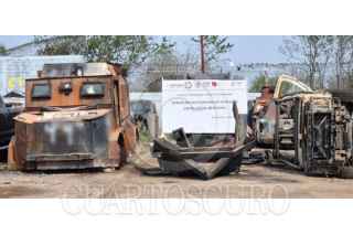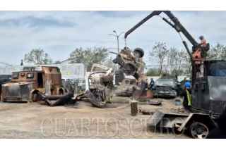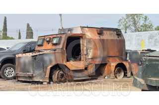 REYNOSA, TAMAULIPAS, 23MARZO2025.- La Fiscalía General de la República (FGR), a través de su Fiscalía Especializada de Control Regional (FECOR) en Tamaulipas, en cumplimiento al Programa Destino de Bienes y Objetos del Delito, destruyó 45 vehículos de los denominados “monstruos”, con blindaje artesanal. El evento se llevó a cabo en las instalaciones de la Fiscalía Federal de Tamaulipas, ubicada en Reynosa, los vehículos destruidos están relacionados con 19 expedientes, los cuales fueron asegurados en diversos enfrentamientos en dicha entidad y presuntamente fueron utilizados por personas pertenecientes a grupos delictivos. En el desarrollo de las diligencias se contó con la presencia del Ministerio Público Federal (MPF), quien coordinó el evento de identificación y realizó las diligencias, así como peritos oficiales y personal del Órgano Interno de Control de la FGR, quienes verificaron que el procedimiento se llevara a cabo en los términos de la norma aplicable. FOTO: FGR/CUARTOSCURO.COM