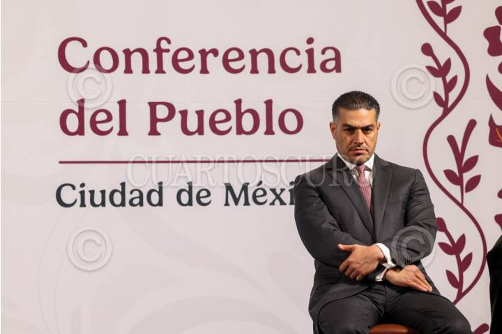 CIUDAD DE MÉXICO, 24MARZO2025.- Omar García Harfuch, secretario de Seguridad y Protección Ciudadana, informo de la detención de Jorge Gregorio "N", alías el Lastra, a quien señalan de ser un reclutador del grupo criminal CJNG, y estar implicado en los hechos delictivos cometidos en el Rancho Izaguirre de Teuchitlán, Jalisco, esto durante la mañanera del pueblo. FOTO: MOISÉS PABLO/CUARTOSCURO.COM