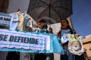 ZACATECAS, ZACATECAS, 25MARZO2025.- Ciudadanos Provida se manifestaron a las puertas del Congreso Legislativo Estatal en demanda de que se rechacé la reforma de la Ley de Salud estatal con la que se busca garantizar el acceso a la interrupción del embarazo luego de su despenalización. La LXV Legislatura del Estado pretende subir la propuesta para su debate y votación después de medio día. FOTO: ADOLFO VLADIMIR /CUARTOSCURO.COM