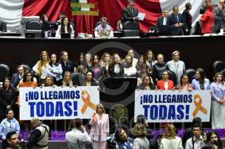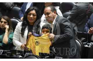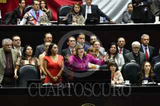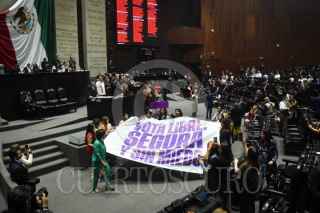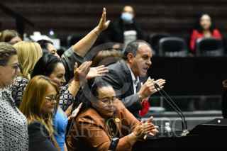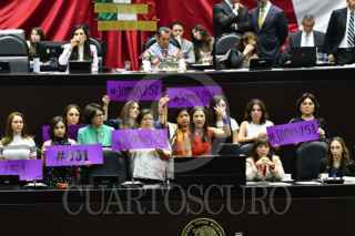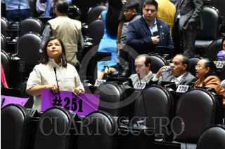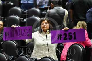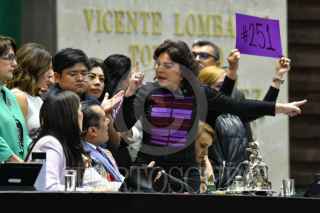 CIUDAD DE MÉXICO, 25MARZO2025.- Lilia Aguilar Gil, diputada del Partido del Trabajo, y sus compañeros de bancada, durante la sesión ordinaria de la Cámara de Diputados, se manifestó a favor del desafuero de Cuauhtémoc Blanco, diputado de Morena, por su presunto delito de violencia sexual. FOTO: MARIO JASSO/CUARTOSCURO.COM