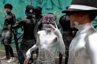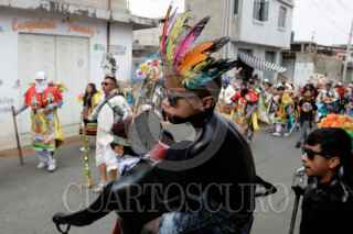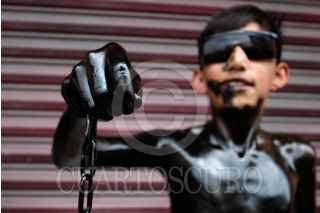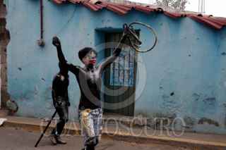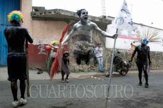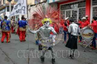 PUEBLA, PUEBLA, 25MARZO2025.- Los xinacates o pintados salen a las calles a danzar pintados con aceite y pintura vegetal en el Carnaval de San Nicolás de los Ranchos, pidiendo dinero para su baño y manchando a quien se niega a cooperar. FOTO: MIREYA NOVO/ CUARTOSCURO.COM
