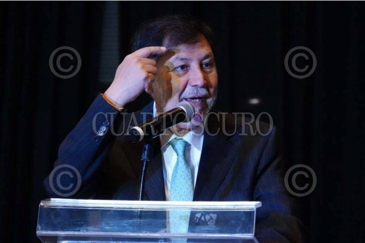 CIUDAD DE MÉXICO, 25MARZO2025.- Gerardo Fernández Noroña, presidente de la mesa directiva del Senado de la República, durante la toma de protesta de Octavio de la Torre, presidente de Concanaco, durante una conferencia de prensa en el Hotel Hilton. FOTO: GRACIELA LÓPEZ/CUARTOSCURO.COM