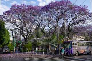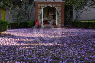 CIUDAD DE MÉXICO 26MARZO2025.- Grandes árboles de jacarandas cubren el cielo con su follaje y tapizan el suelo con sus pétalos caídos, luego de una lluvia moderada en la ciudad. FOTO: ROGELIO MORALES CUARTOSCURO.COM