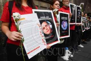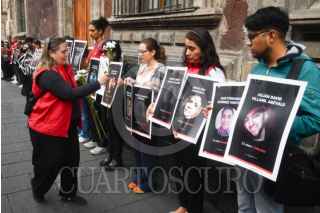 CIUDAD DE MÉXICO, 27MARZO2025.- Integrantes del Instituto para las Mujeres en la Migración (IMUMI) leyeron cartas abiertas al exterior de Palacio Nacional (entre Correo Mayor y Moneda), para exigir justicia y disculpa pública al gobierno federal por las violaciones a los derechos humanos durante el incendio de la Estancia Provisional del Instituto Nacional de Migración (INM) en Ciudad Juárez, Chihuahua, ocurrido hace dos años, el cual dejó un saldo de 40 migrantes fallecidos. FOTO: MARIO JASSO/CUARTOSCURO.COM