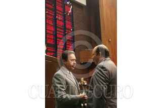 MÉXICO D.F. 17OCTUBRE2007.-Los diputados del PRI Emilo Gamboa Patrón coordinador de los diputados del mismo partido, dialoga con Cesar Jauregui, durante la sesión en la Cámara de Diputados. FOTO: GUILLERMO PEREA/CUARTOSCURO.COM