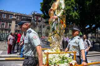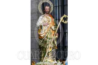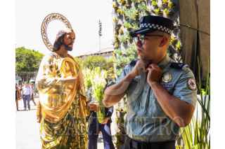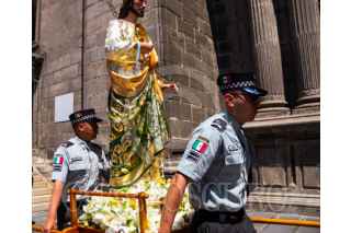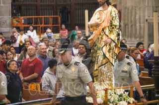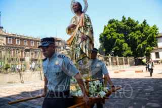 CIUDAD DE MÉXICO. 28MARZO2025.- Víctor González Torres, sueños de las Farmacias Similares, entrego un San Judas Tadeo a la Catedral Metropolitana de la ciudad de México. Este medio día se realizó la entrega de este Santo, protector de la causas difíciles o perdidas. FOTO: VICTORIA VALTIERRA/CUARTOSCURO.COM