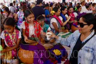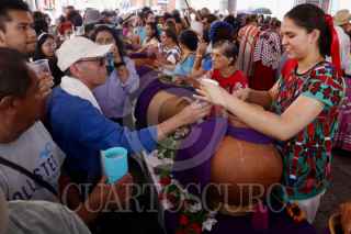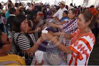 OAXACA DE JUÁREZ, OAXACA, 28MARZO2025.- Decenas de personas acudieron al centro histórico de Oaxaca para participar del día de la Samaritana que se celebra regalando aguas frescas. En el IV viernes de cuaresma, según la tradición católica, se recuerda el pasaje bíblico de Jesús en Samaria, en donde una mujer mitigó su sed con agua de un pozo, por lo cual en Oaxaca se regalan aguas frescas a los transeúntes en templos, negocios y edificios públicos. FOTO: CAROLINA JIMÉNEZ MARISCAL/CUARTOSCURO.COM