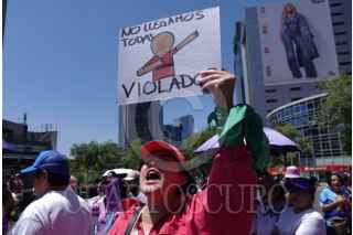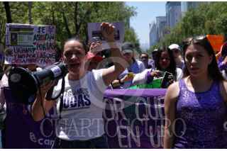 CIUDAD DE MÉXICO, 29MARZO2025.- Colectivas feministas, sociedad civil y políticas asistieron a la Glorieta de las Mujeres que Luchan para manifestarse contra la decisión de la Cámara de Diputados de no desaforar al diputado Cuauhtémoc Blanco, acusado de intento de violación hacia su media hermana. FOTO: GALO CAÑAS/CUARTOSCURO.COM