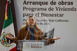 PLAYAS DE ROSARITO, BAJA CALIFORNIA, 29MARZO2025.- Claudia Sheinbaum, presidenta de México, durante el evento protocolario del arranque de obras del programa de vivienda para el bienestar en la entidad. FOTO: PRESIDENCIA/CUARTOSCURO.COM