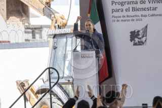 ROSARITO BAJA CALIFORNIA 29MARZO2025.- La presidenta Claudia Sheinbaum inició el programa de Viviendas para el Bienestar en Baja California, colocando la primera piedra del proyecto en Playas de Rosarito. Este programa busca ofrecer viviendas económicas a familias de bajos recursos sin necesidad de créditos tradicionales. La meta es construir un millón de hogares en todo el país: 500,000 para derechohabientes de Infonavit y 500,000 para los no derechohabientes, con un mínimo de 60 m², servicios completos, áreas verdes y acceso al transporte público. En el evento, también participaron la gobernadora Marina del Pilar Ávila, el director de Pemex Octavio Romero, y la secretaria Edna Vega. Sheinbaum destacó que las viviendas serán construidas con la colaboración de Conavi, Infonavit y Fovissste, y los créditos tendrán tasas de interés de 0%. Además, anunció becas para niños y adolescentes en escuelas públicas y atención médica mensual para adultos mayores y personas con discapacidad. También reafirmó que México negociará con Estados Unidos sin ceder ante aranceles. Por su parte, la gobernadora Marina del Pilar subrayó que el programa representa un paso hacia la justicia social y el bienestar de las familias en Baja California, con la meta de crear más de 100,000 viviendas durante su administración. FOTO: OMAR MARTÍNEZ/CUARTOSCURO.COM