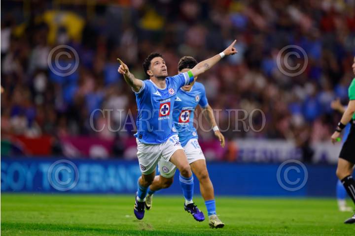 ZAPOPAN, JALISCO, 29MARZO2025.- José Rivero, mediocampista de Cruz Azul, celebra su anotación frente a las Chivas, en partido correspondiente a la jornada 13 del torneo clausura 2025 de la Liga MX. FOTO: FERNANDO CARRANZA/CUARTOSCURO.COM