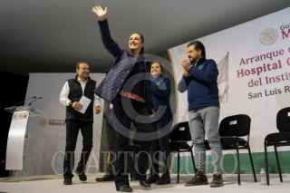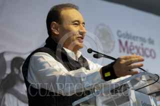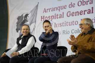 SAN LUIS RÍO COLORADO, SONORA, 29MARZO2025.- Alfonso Durazo, gobernado de Sonora, durante el acto protocolario por el arranque de obras del del Hospital IMSS de San Luis Río Colorado. FOTO: PRESIDENCIA/CUARTOSCURO.COM