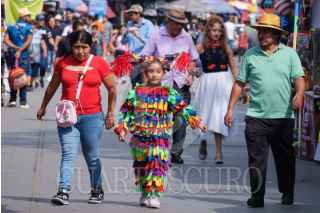 CIUDAD DE MÉXICO, 30MARZO2025.- Una niña disfrazada de piñata, acompañada de sus papás disfrutan de la tarde del domingo en la alcaldía Iztapalapa. FOTO: GRACIELA LÓPEZ/CUARTOSCURO.COM