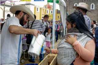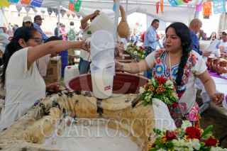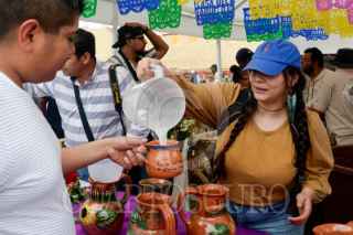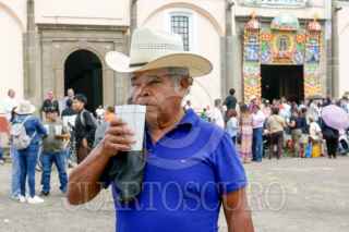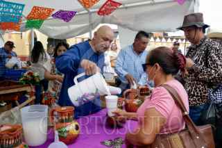 PUEBLA, PUEBLA, 31MARZO2025.- Mayordomos de San Pedro Cholula repartieron más de mil 500 litros de pulque como parte de la tradicional Tlahuanca, donde se festeja a San Pedro de Ánimas y se le piden lluvias y buenas cosechas. FOTO: MIREYA NOVO/CUARTOSCURO.COM