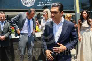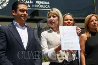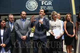 CIUDAD DE MÉXICO. 01ABRIL2025.- Panistas encabezados por Roberto Gil Zuarth y Jorge Romero; presentaron una denuncia de hechos ante la FGR, en contra de la Senadora de Morena por Chihuahua, Andrea Chávez. FOTO: VICTORIA VALTIERRA/CUARTOSCURO.COM