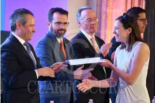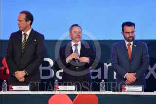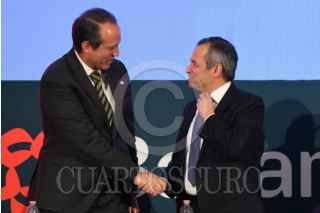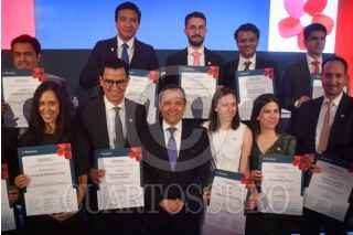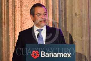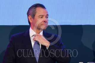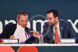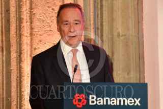 CIUDAD DE MÉXICO, 01ABRIL2025.- Manuel Romo, director general del Grupo Financiero Banamex, y Diego Alejandro Domínguez, durante la ceremonia de entrega de los premios Banamex de economía 2025 realizado en el salón Valparaíso en el centro histórico. FOTO: MARIO JASSO/CUARTOSCURO.COM