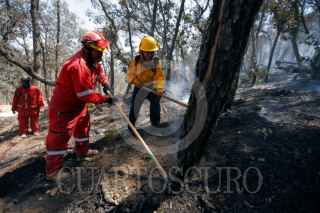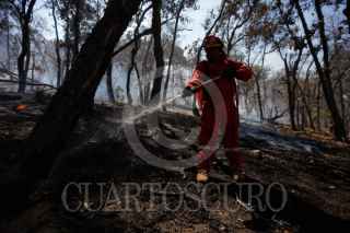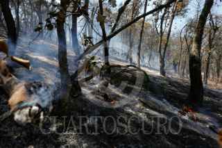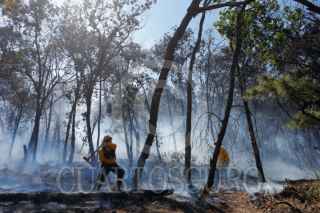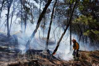 QUERÉTARO, QUERÉTARO, 01ABRIL2025.-Elementos de Protección Civil de los municipios de Humimilpan y Amealco, apoyados por Guardia Nacional y autoridades estatales sofocan el incendio forestal de la comunidad Pio XII la cuál ha consumido 700 hectáreas. El incendió ha sido controlado en un 95% y se espera que sea totalmente sofocado en las próximas horas. FOTO: CÉSAR GÓMEZ/CUARTOSCURO.COM