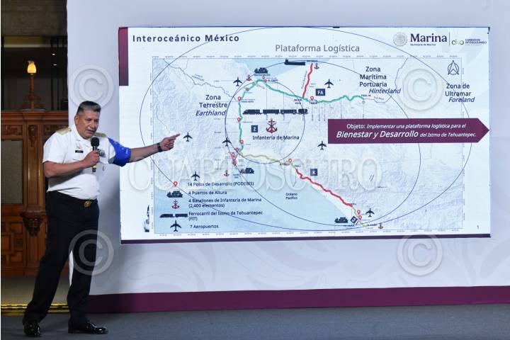 CIUDAD DE MÉXICO, 02ABRIL2025.- Juan Carlos Vera Minjares, director general del Corredor Interoceánico del Istmo de Tehuantepec, durante su intervención en la "Conferencia del pueblo" realizada en Palacio Nacional, en la que informó detalles sobre la plataforma logística del Istmo de Tehuantepec. FOTO: MARIO JASSO/CUARTOSCURO.COM