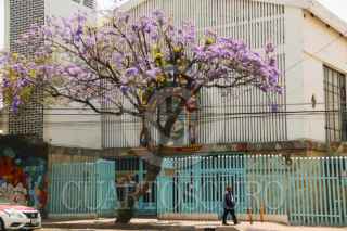 CIUDAD DE MÉXICO. 02ABRIL2025.- Jacaranda en la avenida Eje 3 Sur, en la Colonia Buenos Aires, frente a la iglesia de la Virgen de San Juan de los Lagos; de la alcaldía Cuauhtémoc. FOTO: VICTORIA VALTIERRA/CUARTOSCURO.COM