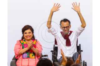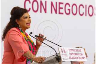 CIUDAD DE MÉXICO. 02ABRIL2025.- La jefa del Gobierno de la ciudad; Clara Brugada Molina, encabezó la presentación “Nuevas empresarias con negocios en Internet”, en el Museo Yancuic, que se encuentra en la alcaldía Iztapalapa. FOTO: VICTORIA VALTIERRA/CUARTOSCURO.COM