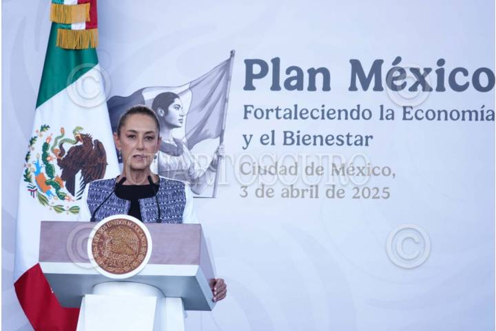CIUDAD DE MÉXICO, 03ABRIL2025.- Claudia Sheinbaum, presidenta constitucional de los Estados Unidos Mexicanos, durante su participación la presentación de la continuación del Plan México. Fortaleciendo la Economía y el Bienestar. El acto se realizó en el Museo de Antropología e Historia. FOTO: GRACIELA LÓPEZ/CUARTOSCURO.COM