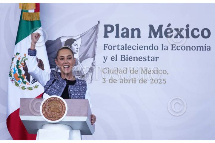CIUDAD DE MÉXICO, 03ABRIL2025.- Claudia Sheinbaum, presidenta constitucional de los Estados Unidos Mexicanos, encabezó la presentación de la continuación del Plan México. Fortaleciendo la Economía y el Bienestar. El acto se realizó en el Museo de Antropología e Historia. FOTO: GRACIELA LÓPEZ/CUARTOSCURO.COM