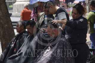 CIUDAD DE MÉXICO, 03ABRIL2025.- Aprendices de una barbería cortan el cabello de manera gratuita en las inmediaciones de la Alameda Central. FOTO: GALO CAÑAS/CUARTOSCURO.COM