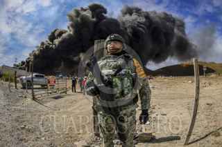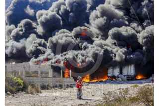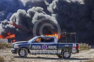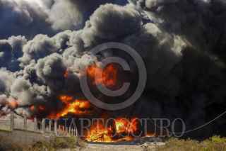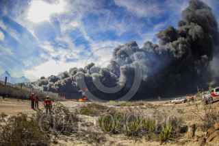 SALTILLO, COAHUILA, 03ABRIL2025.- Un incendio se registró la tarde de este jueves, al rededor de las 12:30 pm en una recicladora de plástico, en las inmediaciones de Saltillo y Ramos Arizpe Coahuila, ubicada muy cerca de la carretera antigua a Monclova, presuntamente fue provocado por un tanque de gas, hasta el momento no hay personas heridas, solo cuantiosos daños materiales, bombeos, protección civil y sedena siguen trabajando en el lugar para sofocar el siniestro. El incendio se puede apreciar desde cualquier punto de la capital coahuilense. FOTO: ALEJANDRO RODRÍGUEZ/CUARTOSCURO.COM