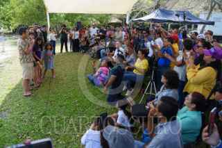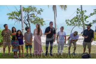 CIUDAD DEL CARMEN, CAMPECHE, 03ABRIL2025.- Productores y actores de la nueva producción de Disney; Familia a la Deriva", ofrecieron una rueda de prensa en el jardín botánico de Ciudad de Carmen. Se contó con la presencia de los actores Mauricio Ochmann, Memo Villegas y Farah Justiniani, quienes estuvieron acompañados por el secretario de Turismo de Campeche Mauricio Arceo Piña. Este rodaje se filmará en locaciones de Campeche y del municipio de Cd. Carmen. FOTO: MICHAEL BALAM/CUARTOSCURO.COM