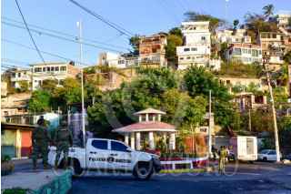 ACAPULCO, GUERRERO, 03ABRIL2025.- Una persona falleció durante un ataque armado e incendio de una tienda en la popular colonia La Mira de Acapulco, los hechos ocurrieron está tarde cuando hombres armados irrumpieron en el pequeño negocio para matar a la persona que atendía y después prender fuego, la colonia La Mira quedo resguarda por personal de la Secretaría de Marina, Guardia Nacional y policías del estado, este es el segundo día de violencia en dicha colonia, el día ayer fue asesinado un taxista por lo que se suspendió el trasporte público en la colonia. FOTO: CARLOS ALBERTO CARBAJAL/CUARTOSCURO.COM