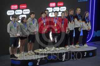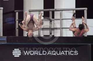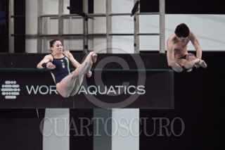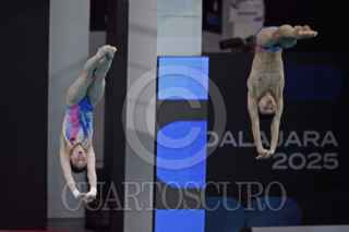 ZAPOPAN, JALISCO. 04ABRIL2025.- Hoy en el Centro Acuático Metropolitano y durante la justa deportiva del Mundial de Clavados Guadalajara 2025, se llevo a cabo la final equipo mixto 3 y 10 metros en donde el equipo Chino consiguió el Oro, seguido por el equipo italiano con la Plata y en tercera posición el equipo Alemán, el equipo Mexicano logro la cuarta posición pero no le alcanzo para subir al podio. FOTO: FERNANDO CARRANZA GARCIA / CUARTOSCURO.COM