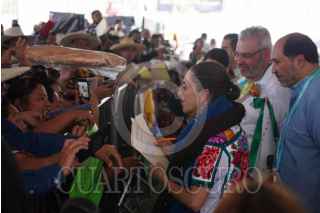 PARACHO, MICHOACÁN, 05ABRIL2025.- La presidenta de México Claudia Sheinbaum Pardo inició en la comunidad de Cherán Atzícuri (Cheranástico) el Plan de Justicia del Pueblo Purépecha. De gira por Michoacán se dio el banderazo al programa nacional de estufas eficientes, llamado Pahránka, la mandataria mexicana manifestó que no sería lo que es, si no fuera gracias al pueblo purépecha y a lo que aprendió en estas tierras michoacanas. FOTO: JUAN JOSÉ ESTRADA SERAFÍN /CUARTOSCURO.COM