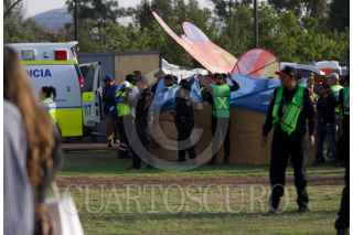 CIUDAD DE MÉXICO, 05ABRIL2025.- Una estructura metálica colapsó durante el primer día del Festival AXE Ceremonia en el Parque Bicentenario. Según el comunicado de la Secretaría de Seguridad Ciudadana (SSC) se habla de dos heridos de prioridad trasladados al hospital Rubén Leñero. Las actividades en el festival no se han suspendieron. FOTO: CUARTOSCURO.COM