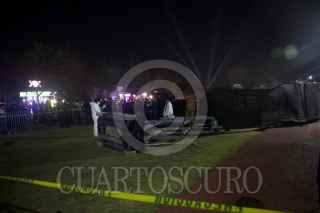 CIUDAD DE MÉXICO, 05ABRIL2025.- Peritos de la Policía de Investigación de la FGJCDMX laboran en el lugar donde esta tarde una estructura colapsó y cayó sobre dos personas que se encontraban en el festival AXE Ceremonia en el Parque Bicentenario. El hecho ocasionó la muerte de una mujer y un hombre que habían sido trasladados al hospital Rubén Leñero. FOTO: CUARTOSCURO.COM