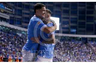 PUEBLA, PUEBLA, 5ABRIL2025.- Jugadores en festejo de gol durante el partido entre la Máquina Celeste del Cruz Azul y los Pumas de la UNAM, correspondiente a la jornada 14 del torneo Clausura 2025 de la Liga BBVA MX, celebrado en el Estadio Cuauhtémoc. FOTO: MIREYA NOVO/ CUARTOSCURO.COM