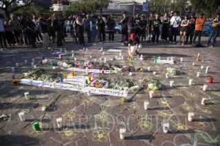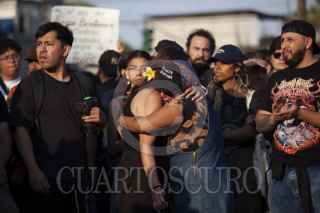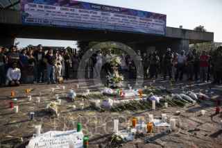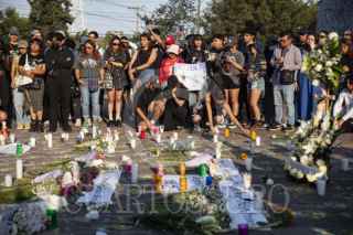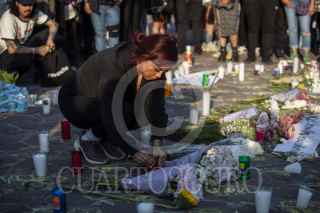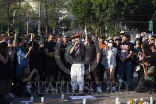 CIUDAD DE MÉXICO, 06ABRIL2025.- Decenas de personas se manifiestan frente a la entrada principal del Parque Bicentenario para exigir justicia e investigación adecuada tras el colapso de una grúa en el Festival AXE ceremonia en el cual dejo un saldo de dos personas muertas Berenice y Miguel, ambos fotógrafos de conciertos. FOTO: ANDREA MURCIA /CUARTOSCURO.COM