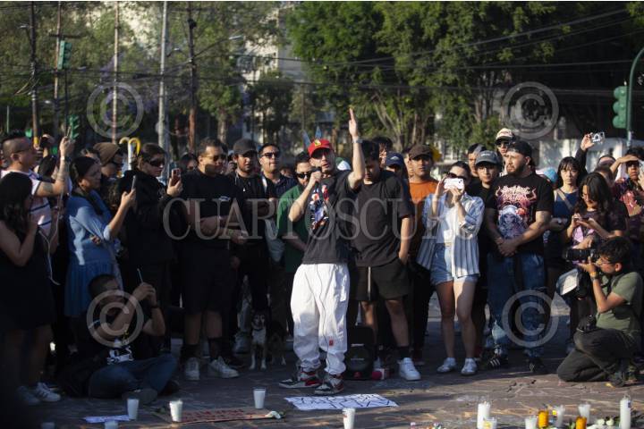 CIUDAD DE MÉXICO, 06ABRIL2025.- Decenas de personas se manifiestan frente a la entrada principal del Parque Bicentenario para exigir justicia e investigación adecuada tras el colapso de una grúa en el Festival AXE ceremonia en el cual dejo un saldo de dos personas muertas Berenice y Miguel, ambos fotógrafos de conciertos. FOTO: ANDREA MURCIA /CUARTOSCURO.COM