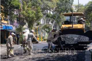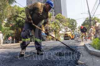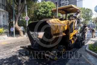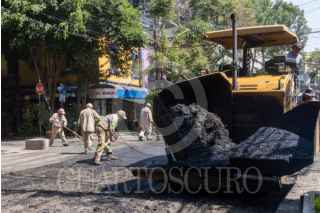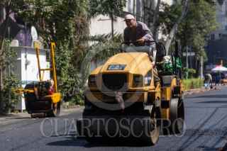 CIUDAD DE MÉXICO, 07ABRIL2025.- Trabajadores del Gobierno de la Ciudad de México pavimentan calles de la colonia Roma, en e marco del programa Mega Bachetón 2025, el cual según en pablaras de la Jefa de Gobierno acabará con los baches en las vías primarias en la Ciudad de México antes de la temporada de lluvias. FOTO: MOISÉS PABLO/CUARTOSCURO.COM