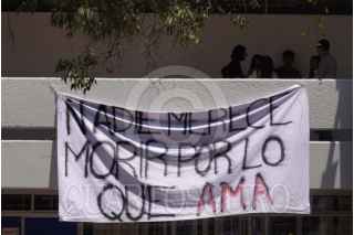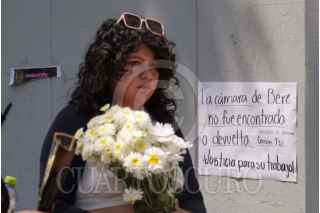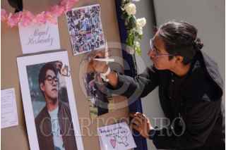 CIUDAD DE MÉXICO, 07ABRIL2025.- Alumnos de la Facultad de Estudios Superiores Acatlán realizaron un homenaje a los fotógrafos y ex alumnos de esta institución Citlalli Berenice Giles Rivera y Miguel Rojas Hernández, quienes perdieron la vida el pasado 5 de abril debido a que se cayó una estructura de una grúa mientras estaban trabajando en el Festival Axel Ceremonia en el Parque Bicentenario. Amigos, compañeros y maestros rindieron palabras en su honor y exigieron justicia a los responsables que se han deslindado de cubrir la indemnización. FOTO: GRACIELA LÓPEZ/CUARTOSCURO.COM