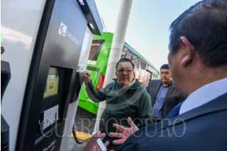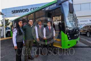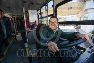 OCOYOACAC, ESTADO DE MÉXICO, 07ABRIL2025.- Daniel Sibaja Secretario de Movilidad del Estado de México encabezó las pruebas de “Taruk”, el primer autobús 100 por ciento mexicano, de las empresas MegaFlux y DINA, las pruebas durarán mes y medio y se espera que pronto sean más unidades las que estén recorriendo la entidad mexiquense. FOTO: CRISANTA ESPINOSA AGUILAR /CUARTOSCURO.COM