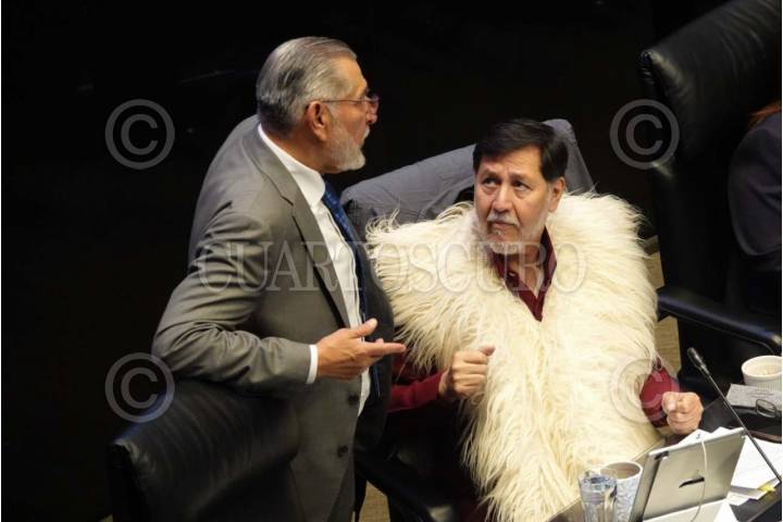 CIUDAD DE MÉXICO, 08ABRIL2025.- Los senadores Adan Augusto y Gerardo Fernández Noroña conversaron durante la Sesión Ordinaria en el Senado de la República. FOTO: GRACIELA LÓPEZ/CUARTOSCURO.COM