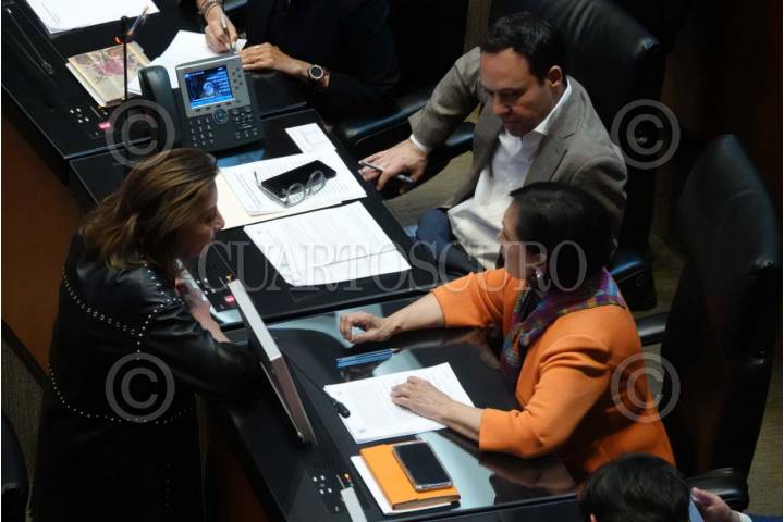 CIUDAD DE MÉXICO, 08ABRIL2025.- Los senadores Patricia Murguía, coordinadora del PAN, conversó con Clemente Castañeda, coordinador de Movimiento Ciudadano durante la Sesión Ordinaria en el Senado de la República. FOTO: GRACIELA LÓPEZ/CUARTOSCURO.COM