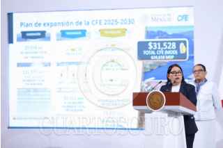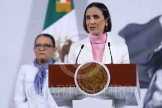 CIUDAD DE MÉXICO, 09ABRIL2025.-Luz Elena González, secretaria de Energía, participa en la conferencia matutina de este miércoles. FOTO: DANIEL AUGUSTO/ CUARTOSCURO.COM