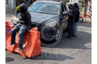 CIUDAD DE MÉXICO 09ABBRIL2025.- Supuestos estudiantes en su mayoría encapuchados de la Preparatoria 5 Jose Vasconcelos, bloquearon Calzada de las Bombas y su cruce con Calzada del Hueso, los inconformes exigen esclarecimiento en tema de desparecidos en nuestro país. FOTO:ROGELIO MORALES/CUARTOSCURO.COM