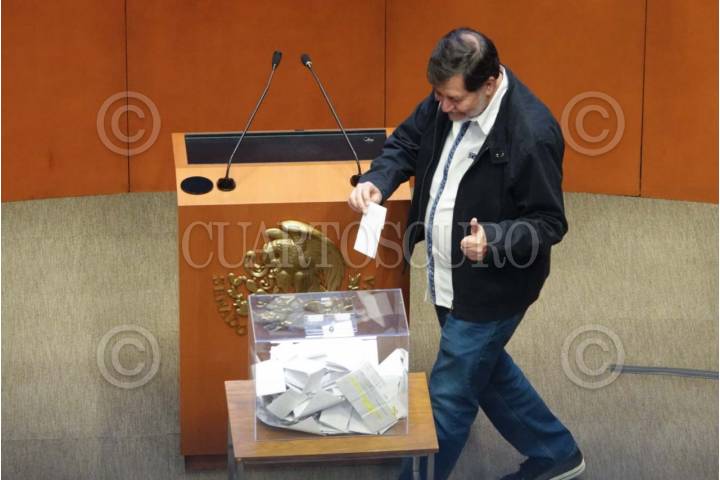 CIUDAD DE MÉXICO, 08ABRIL2025.- El senador Gerardo Fernández Noroña, presidente de la mesa directiva, durante su votación para la elección de los próximos magistrados durante la Sesión Ordinaria en el Senado de la República. FOTO: GRACIELA LÓPEZ/CUARTOSCURO.COM