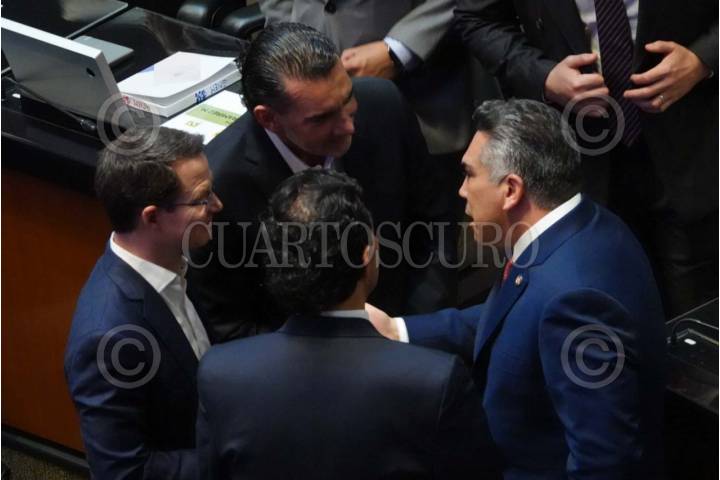 CIUDAD DE MÉXICO, 08ABRIL2025.- Los senadores Ricardo Anaya, Luis Armando Melgar y Alejandro Moreno conversaron durante la Sesión Ordinaria en el Senado de la República. FOTO: GRACIELA LÓPEZ/CUARTOSCURO.COM