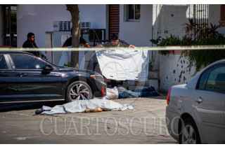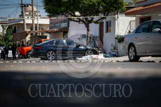 CULIACÁN, SINALOA, 09ABRIL2025.- Un grupo armado asesina a tres personas con ráfagas de arma larga este en la colonia Miguel Hidalgo, al oriente de la ciudad, eran reconocidos abogados: el Lic. Carlos Omar Ayala Martínez y el Lic. Alberto Robespierre Lizárraga Hidalgo. Ambos acudieron al lugar para entrevistarse con Jesús Manuel “N”, de 38 años, vecino de la misma colonia y familiar de los propietarios de una residencia vandalizada y quemada casi simultáneamente al ataque. Según los informes, los tres fueron atacados por hombres armados con rifles de alto calibre, quienes huyeron tras el crimen. En el lugar quedó un automóvil blindado Volkswagen Jetta GLi negro, modelo reciente, con múltiples impactos de bala, aunque se desconoce si pertenecía a alguna de las víctimas. FOTO: JOSÉ BETANZOS ZÁRATE/CUARTOSCURO.COM