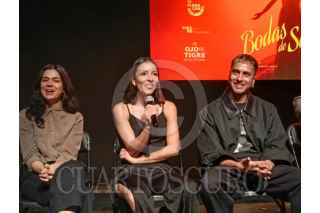 CIUDAD DE MÉXICO, 10ABRIL2025.- Miguel Tercero, actor, y Ana Guzmán, actriz; durante la conferencia de la puesta en escena “Bodas de Sangre”, basada en el clásico de Federico García Lorca, la cual se estrenará el 9 de mayo en el Foro Shakespeare. Los ahí presentes destacaron que esta versión esta ubicada en Culiacán y será musicalizado con corridos tumbados y canto cardenche. FOTO: MOISÉS PABLO/CUARTOSCURO.COM