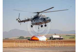 XILITLA, SAN LUIS POTOSÍ, 10ABRIL2025.- En seguimiento al compromiso de salvaguardar la vida humana y los recursos naturales, la Secretaría de Marina a través de la Armada de México, desplegó helicópteros MI-17 en acciones de apoyo para la sofocación de incendios forestales en San Luis Potosí y Nayarit, en coordinación con la Comisión Nacional Forestal (CONAFOR), bajo la activación del Plan Marina. En inmediaciones del ejido “Soledad de Zaragoza”, municipio de Xilitla, un helicóptero MI-17 (ANX-2204) efectuó nueve maniobras de descarga aérea utilizando helibalde, con capacidad de 2,500 litros por operación, vertiendo un total de 22,500 litros de agua, logrando un avance del 95 ? sofocación y control del incendio. FOTO: SEMAR/CUARTOSCURO.COM